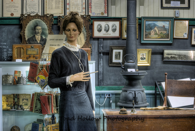 Metchosin’s first teacher Elizabeth Fisher lived with her two daughgters Emily, aged eight, and Edith, aged six, in the living quarters that had been provided at the rear of the building. Her two little boys stayed with their father and Mrs. Morris (grandmother) at Glen Lake. Every Saturday morning William Fisher saddled his horse and rode over the hills to take fresh provisions to his wife and daughters, returning late Sunday. The living quarters as seen in this 1899 photograph of the school was really no more than an attached shed. The school was heated by an open brick fireplace. The men of the district, when clearing land, were always alert to find a supply of suitable bark which they would haul to the school. About the turn of the century the fireplace was replaced by a wood-burning stove, for a more equal distribution of heat. Water was provide by a well close by.